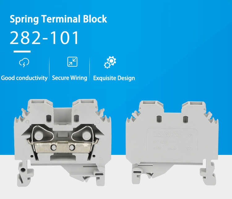 Спружынныя клеммныя блокі спалучаюць корпус з ПА66/медзі і спружынныя заціскі для вібратрывалых і ўстойлівых да карозіі электрычных злучэнняў. Дзякуючы мантажу на 35-міліметровую DIN-рэйку без выкарыстання інструментаў, эканомнай модульнай канструкцыі і супрацьударным характарыстыкам, яны вылучаюцца ў аўтамабільных/чыгуначных прылажэннях, дзе патрабуюцца даўгавечныя рашэнні для праводкі, якія не патрабуюць абслугоўвання.