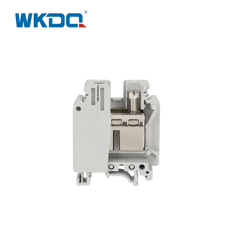 Аднаузроўневыя клеммы маюць шрубавыя злучэнні і прызначаны для шырокага спектру прымянення. З намінальным папярочным перасекам 35 мм2 яны здольныя вытрымліваць значныя электрычныя токі. Гэтыя клеммы выраблены з выкарыстаннем вогнеўстойлівага ізаляцыйнага матэрыялу, які гарантуе бяспеку і даўгавечнасць. Металічныя кампаненты выраблены з нікеляванай латуні, якая забяспечвае выдатную праводнасць і ўстойлівасць да карозіі.